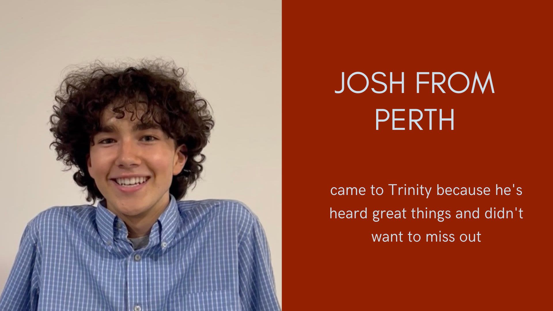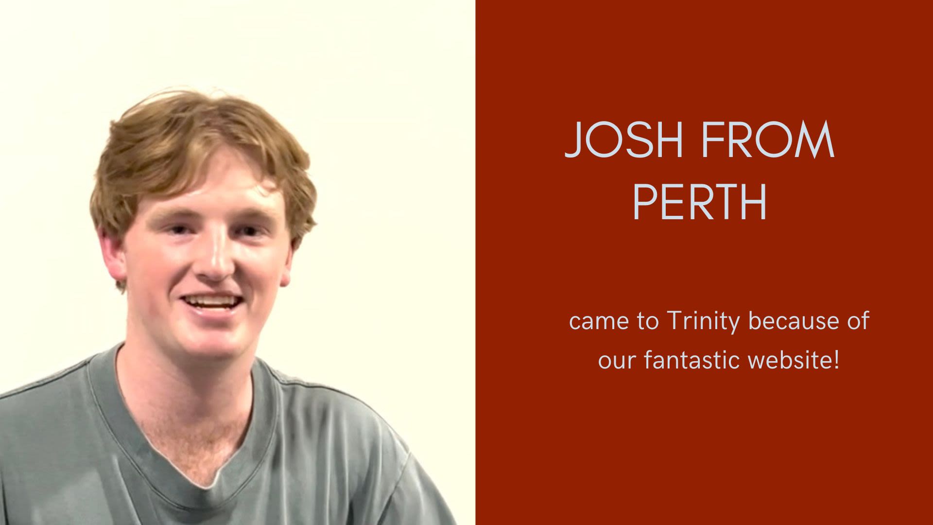 Josh from Perth came to Trinity because he had heard great things