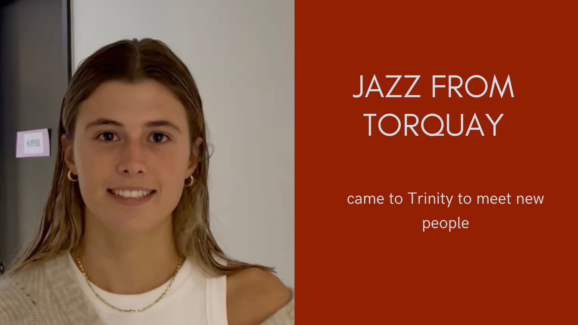 Scarlett from Sydney came to Trinity to meet new people