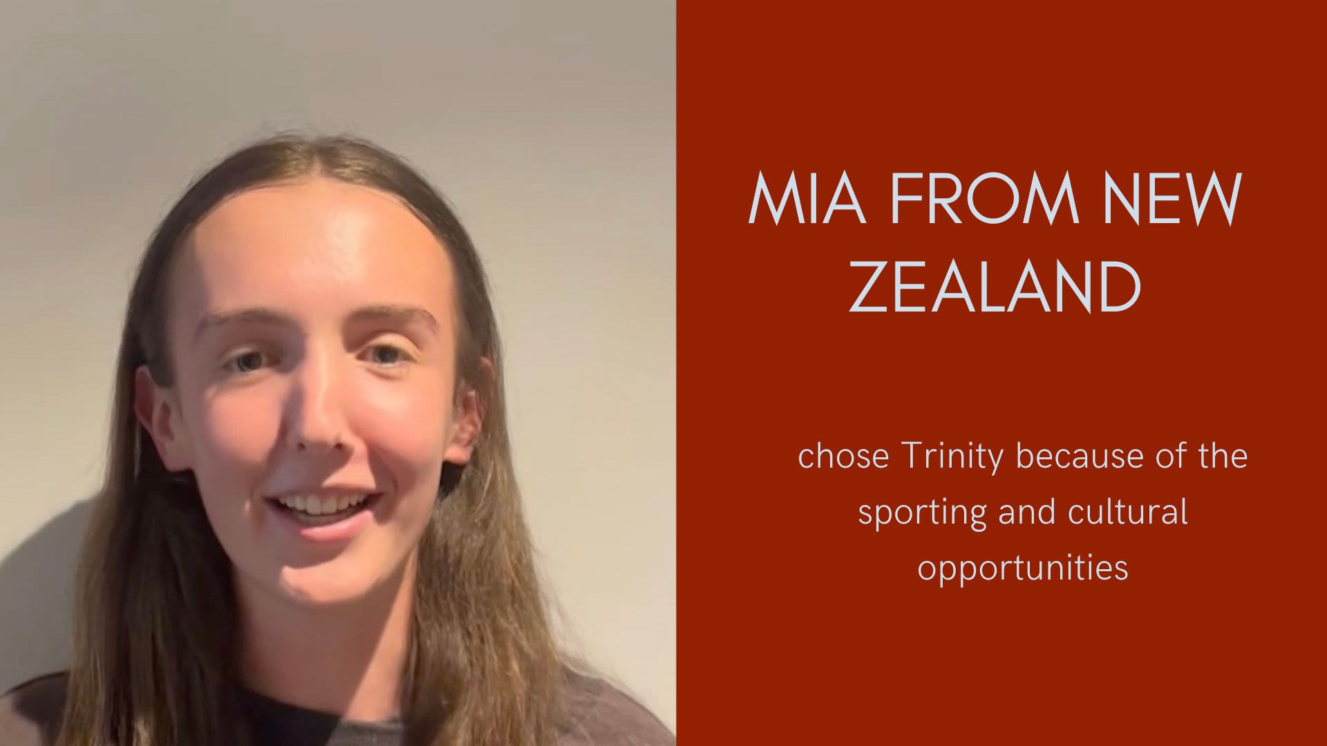 Mia from New Zealand chose Trinity because of the sporting and cultural opportunities