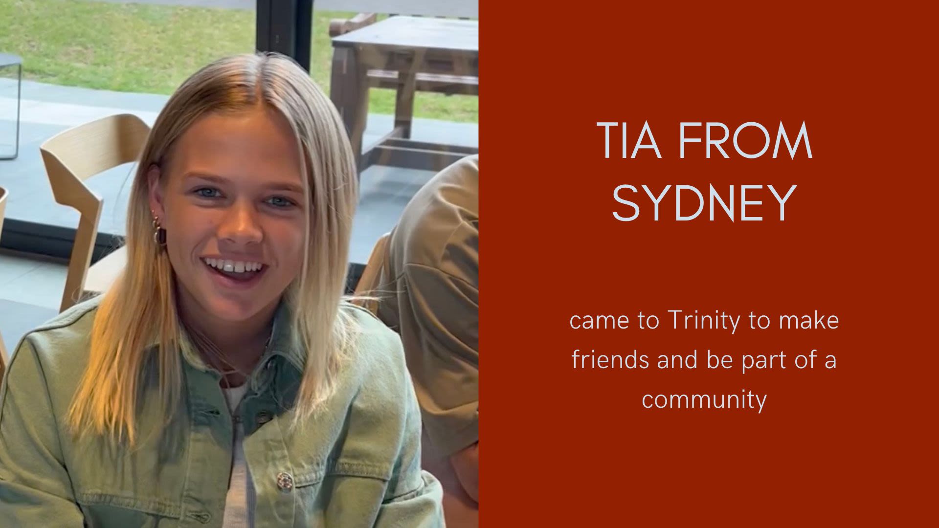 Tia from Sydney came to Trinity to make new friends and be part of a community