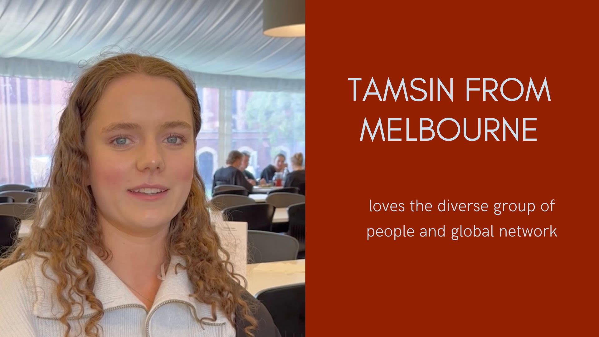 Tasmin from Melbourne loves the diverse group of people and global network