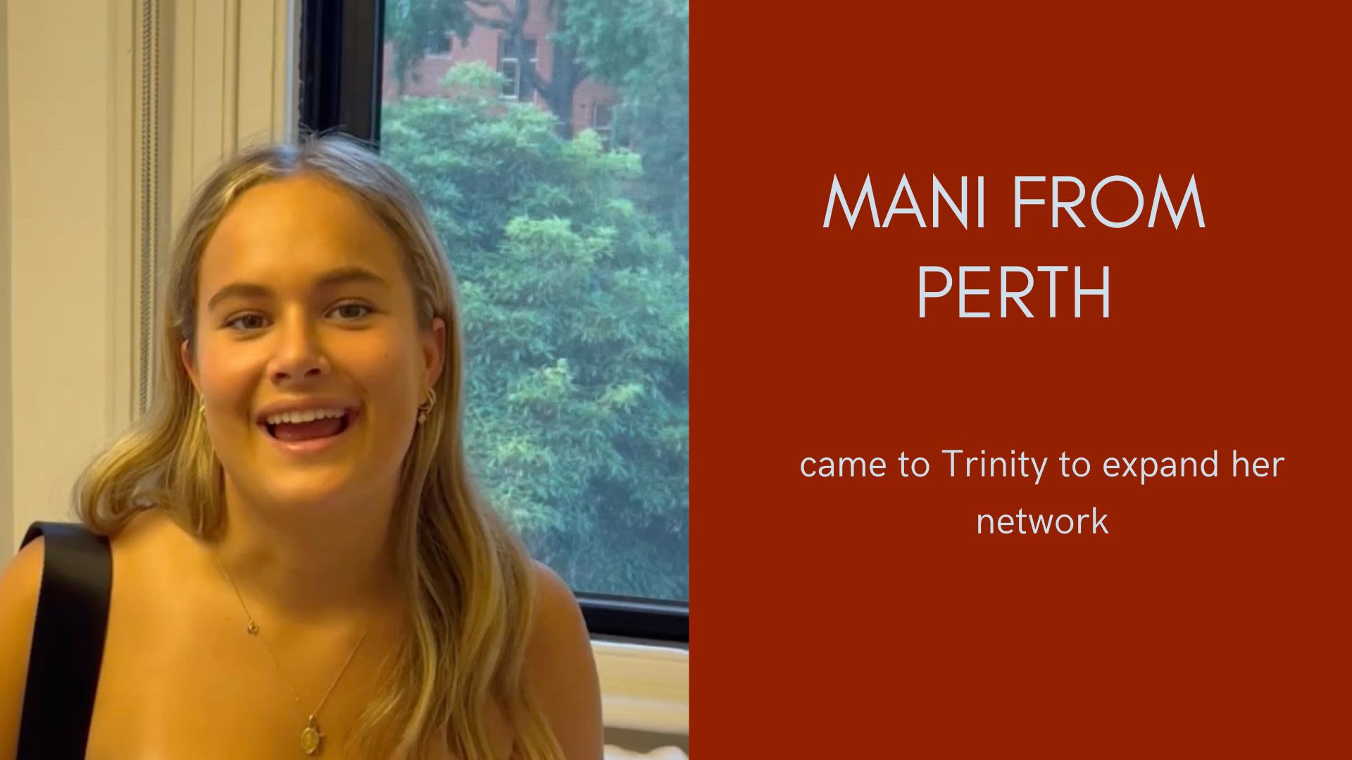 Mani from Perth came to Trinity to expand her network