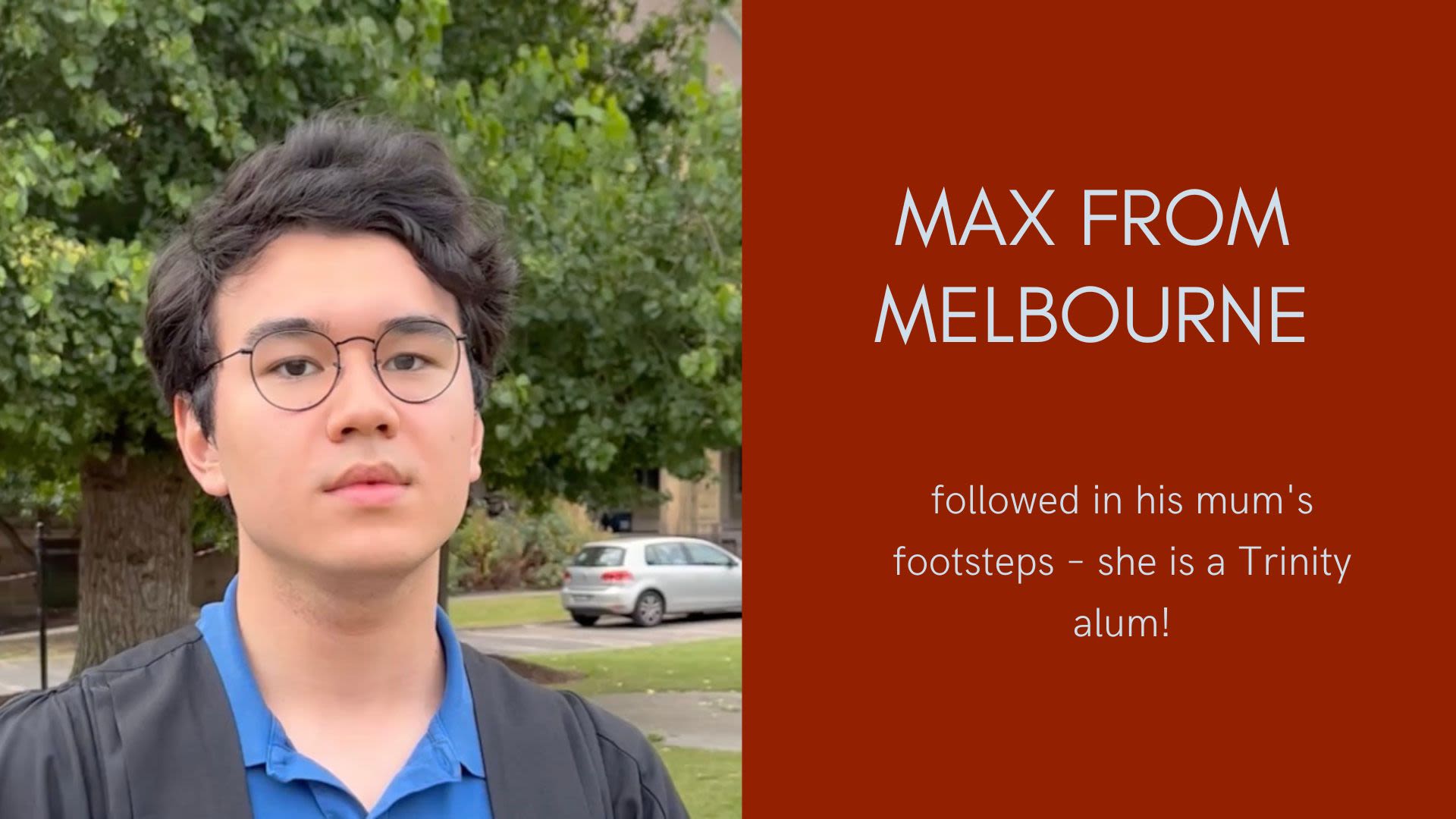 Max from Melbourne came to Trinity because his mother is an alum