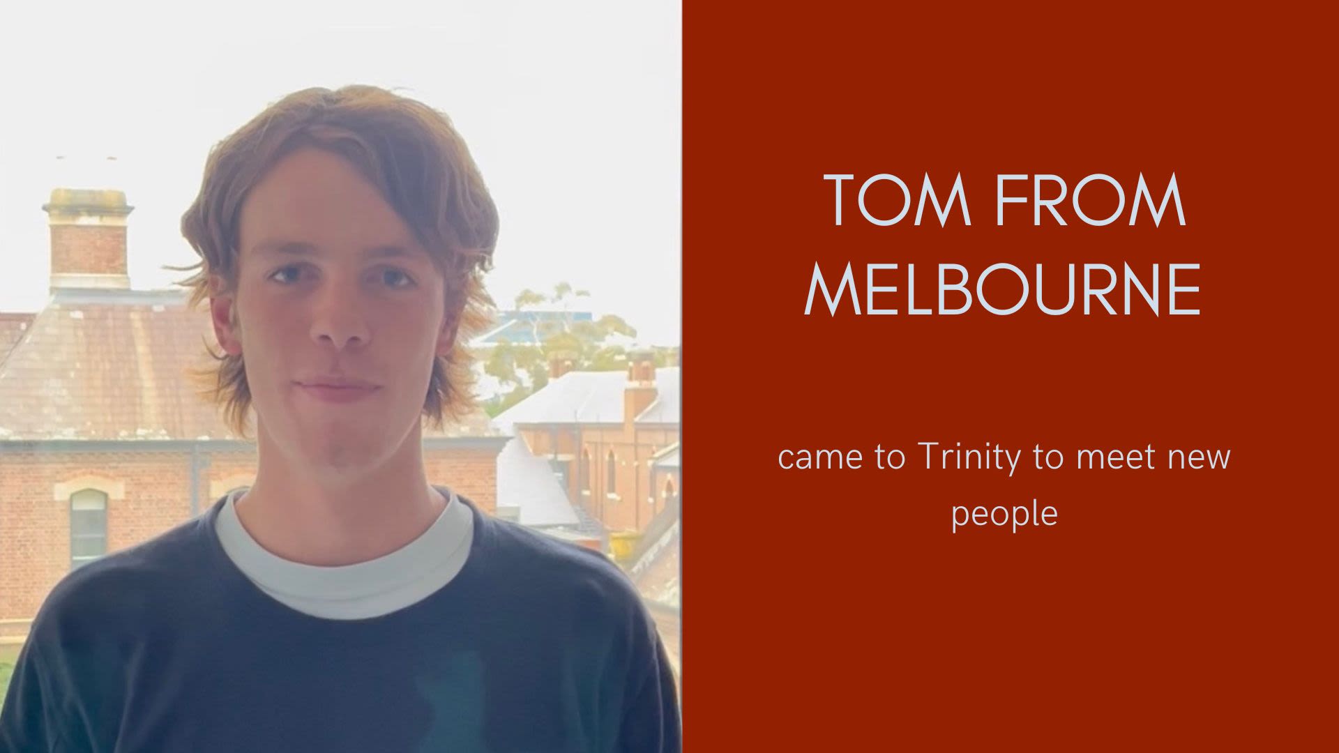 Tom from Melbourne came to Trinity to meet new people