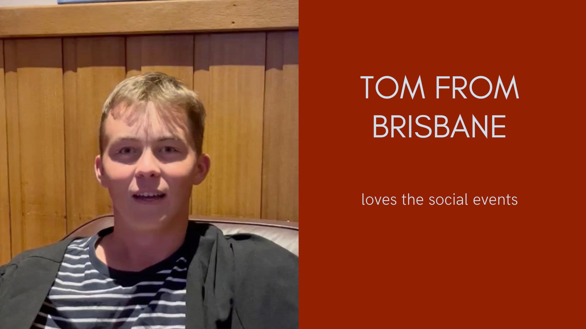 Tom from Brisbane loves the social events
