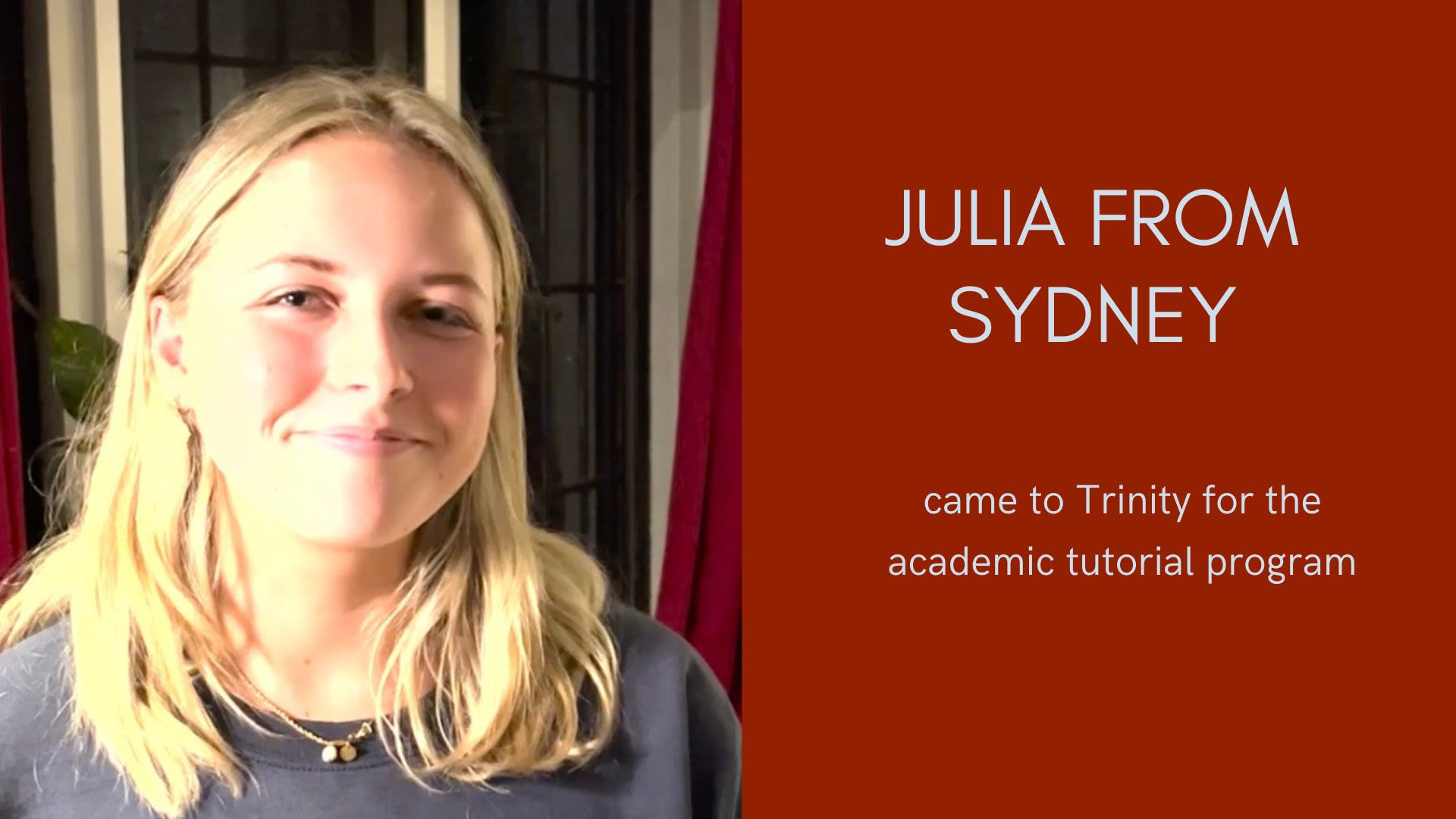 Julia from Sydney came to Trinity for the academic tutorial program