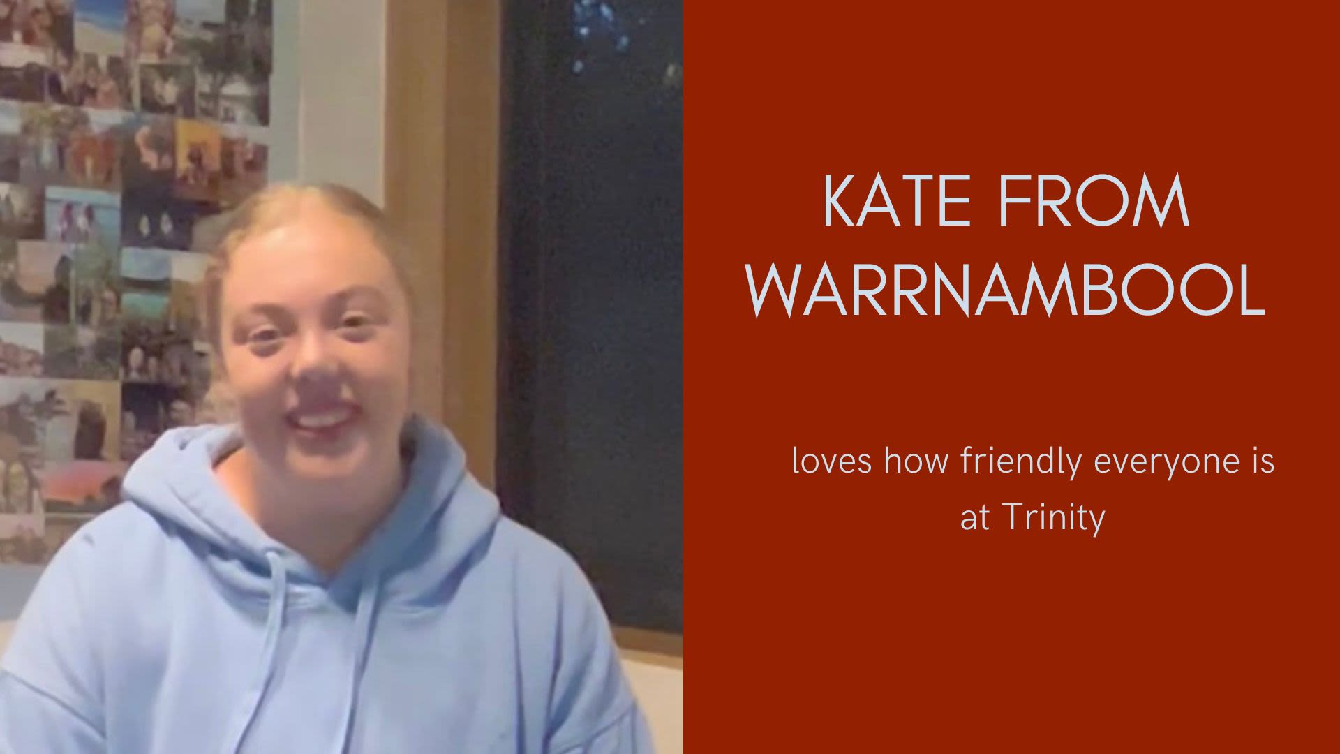 Claudia from Melbourne came to Trinity because it looks like a great place