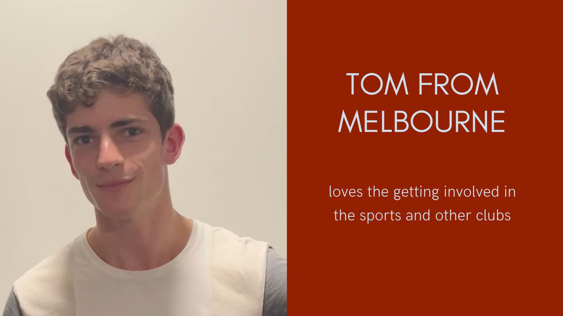 Tom from Melbourne loves getting involved in the sports and other clubs