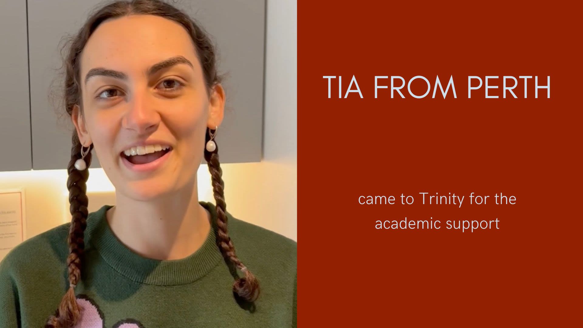 Tia from Perth came to Trinity for the academic support
