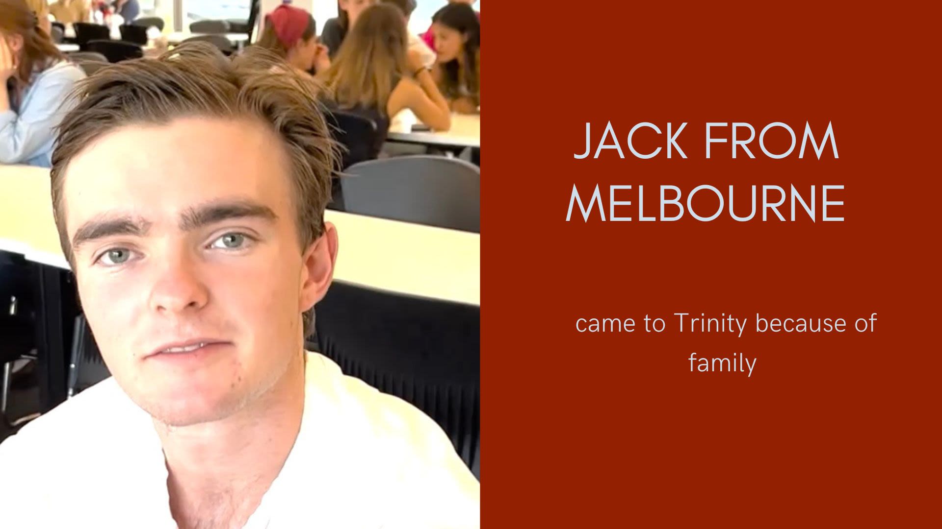 James from Melbourne came to Trinity for the social aspect