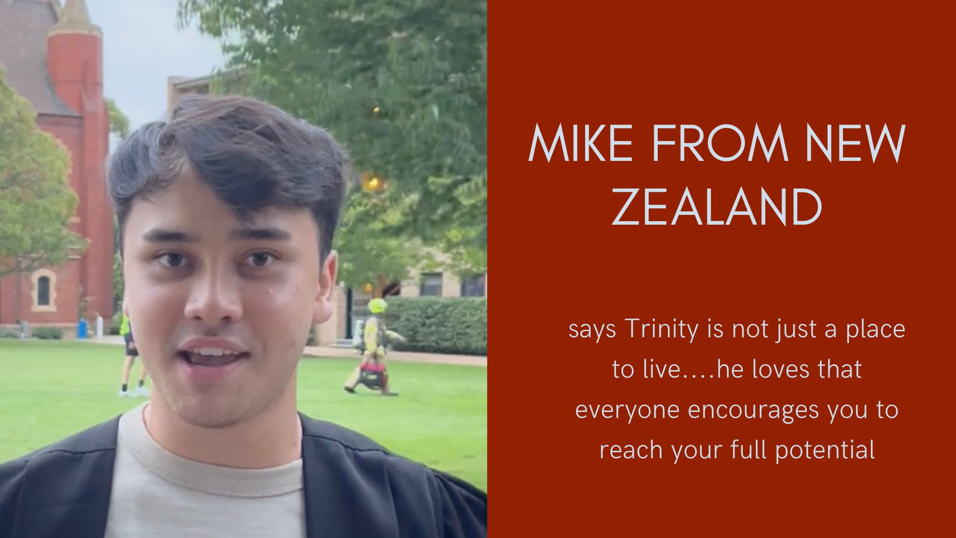 Hamish from Melbourne came to Trinity for the culture, facilities and opportunities