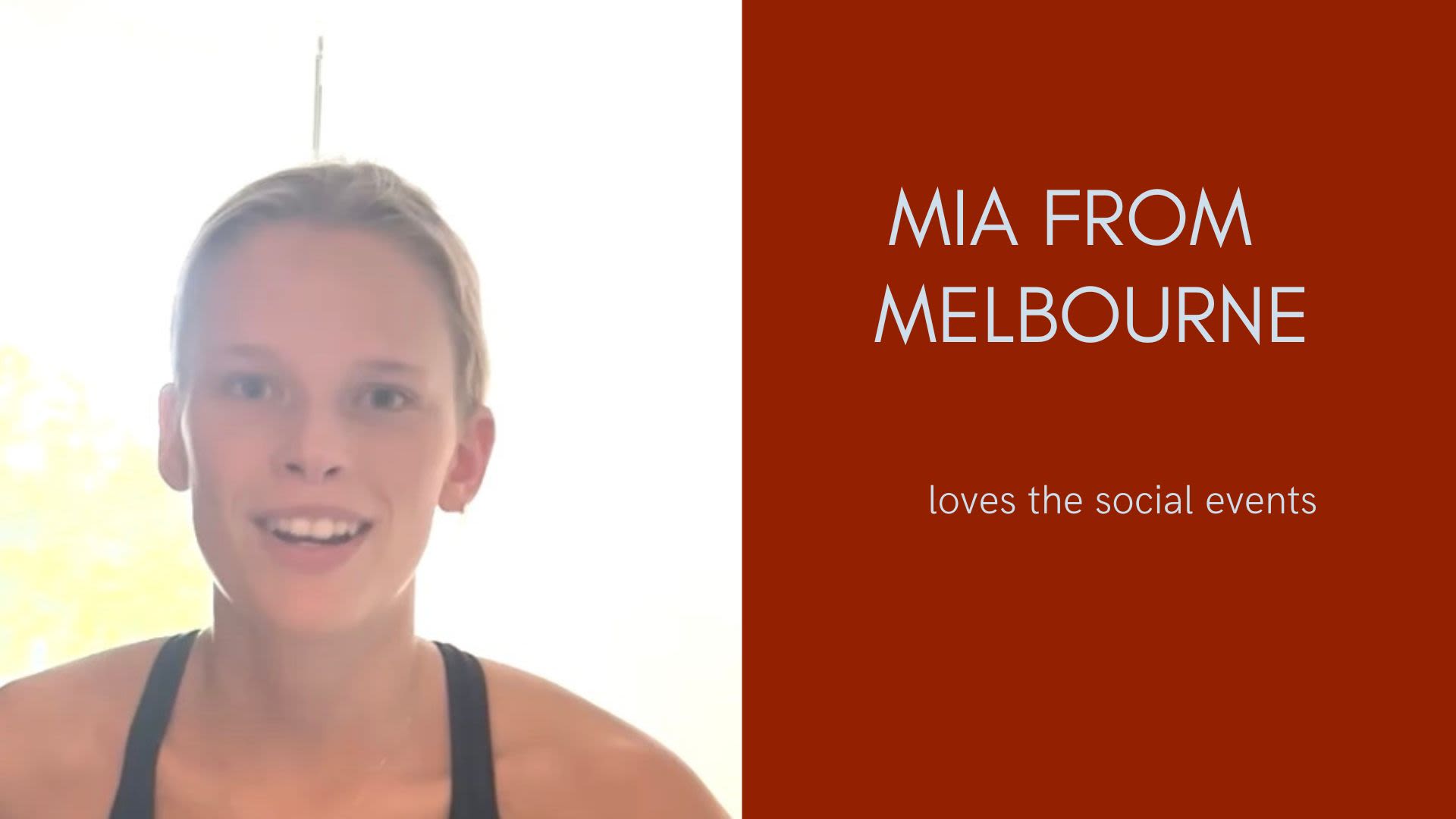 Mia from Melbourne loves the social events