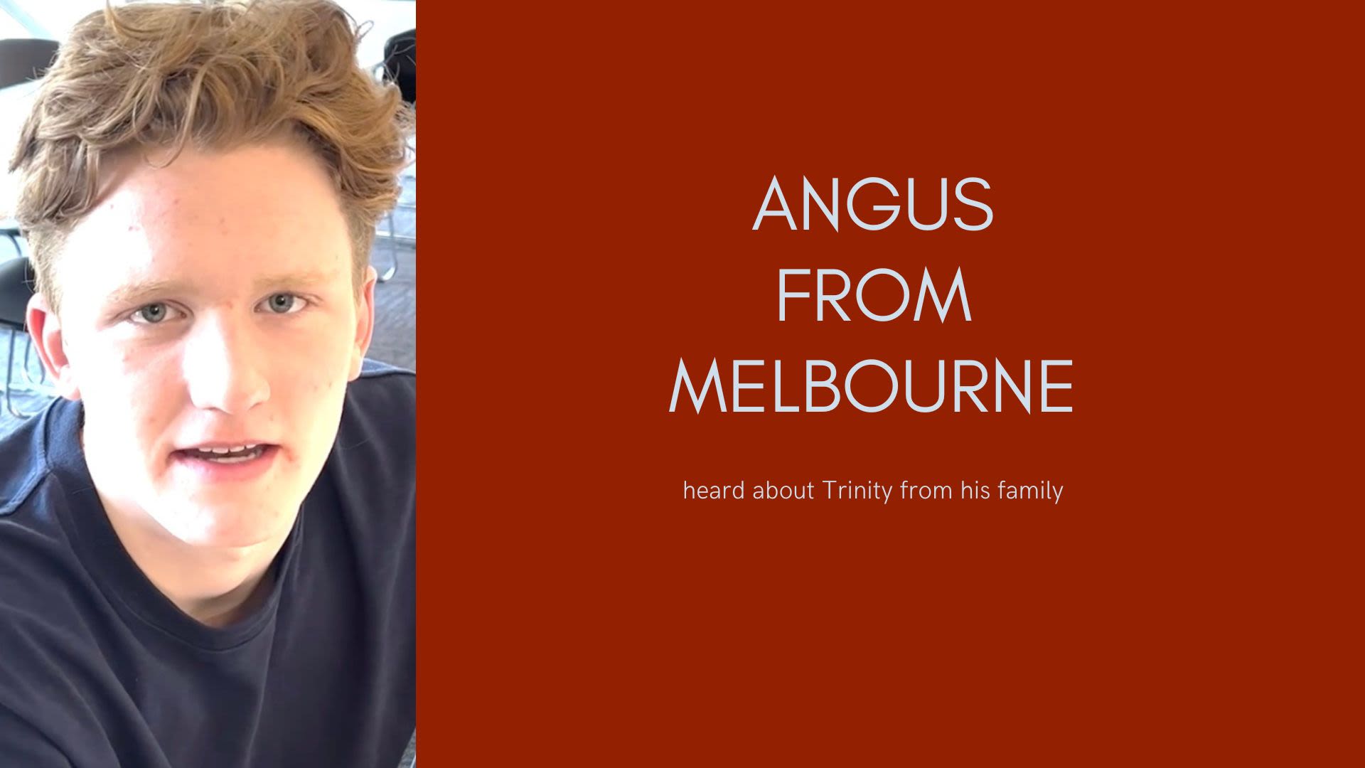 Angus from Melbourne heard about Trinity from family