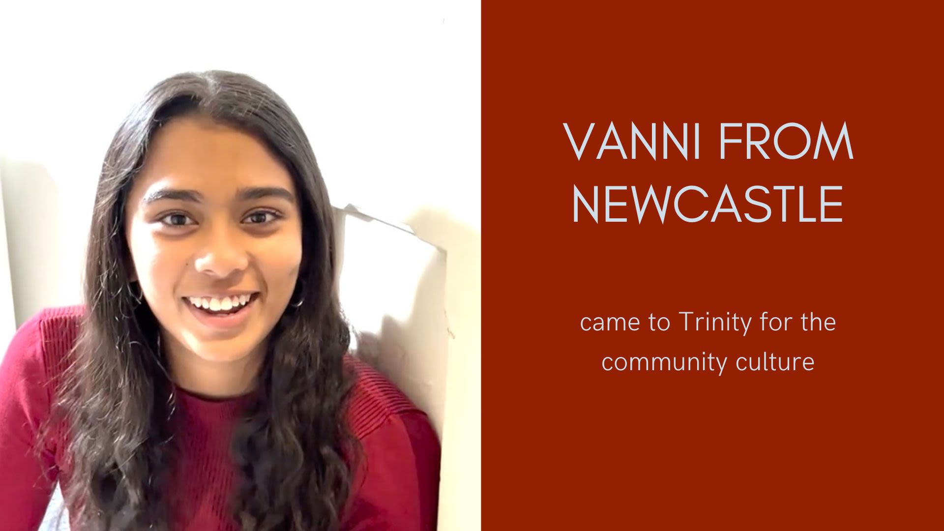 Vanni from Newcastle came to Trinity for the community culture