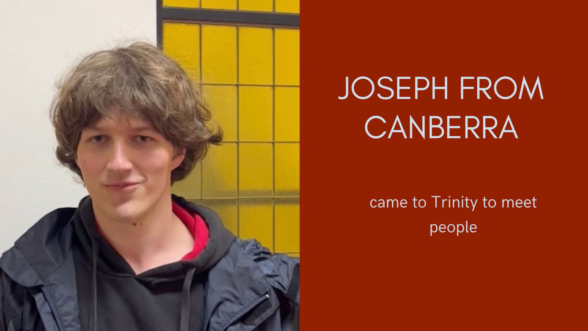 Joseph from Canberra came to Trinity to meet people