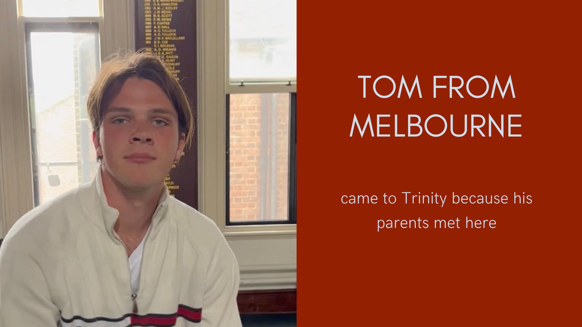 Tom from Melbourne came to Trinity because his parents met here